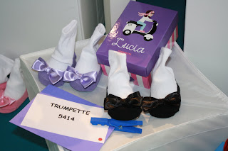 Back to Trumpette. I think just about every variation that can be made of those ubiquitous Mary Jane socks has been done, but the new beribboned Lucia socks (pre-order for $29.50) I'm sure will still become a popular baby shower gift.