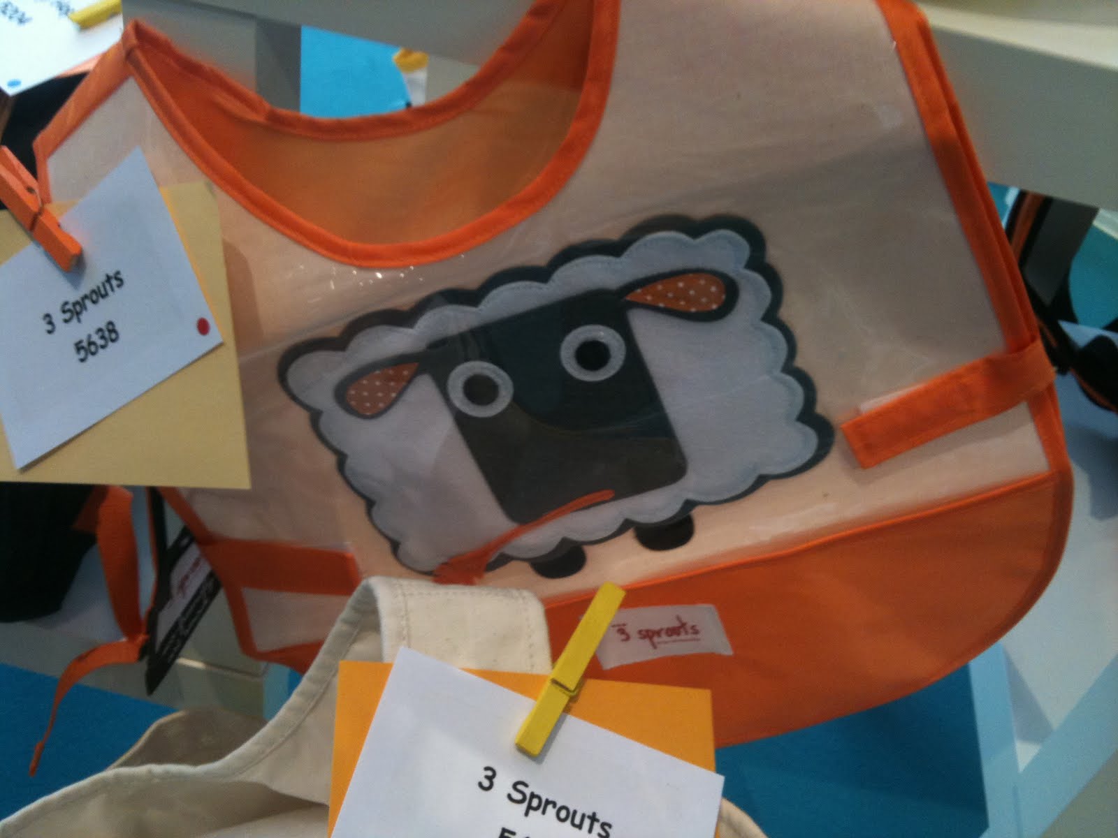 It is always a treat to see the newest modern, organic kids' products by 3 Sprouts, a company that "launched" about the same time I started this blog. We have enjoyed chatting at trade shows ever since then. 3 Sprouts' new eco-friendly art smocks are not the smocks you wore in nursery school. These have beautiful (protected) felt appliques and wipe clean easily. They retail for about $24.