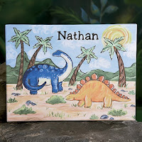 Company Kids has just made a smart move and started offering free monogramming on lots of kids' items (sleeping bags, towels, and more). They have also added some nice personalized wall art like this Dinosaur Canvas. It measures 16 x 12" and is printed on cotton canvas with a wooden frame, ready to hang. $55 at Company Kids.