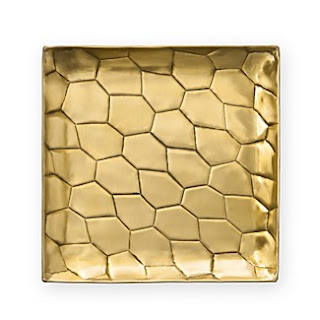 "Powerstone" Square Tray ($125). This unique piece is handmade from brass with oil rubbed finish. It would make a great wedding gift for a couple whose taste runs more contemporary.