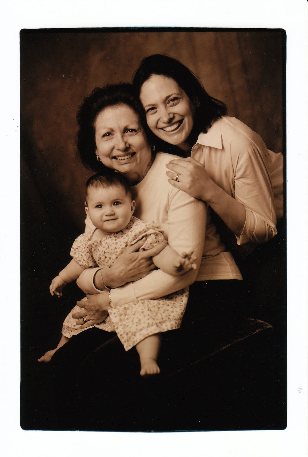 Photo by Kate Burton: Me, my mom, and R. (age 8 months).