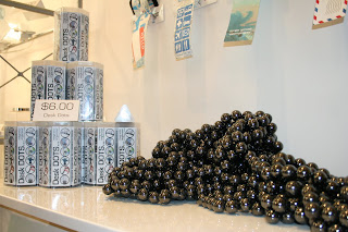 Finally, I was very impressed with the designs of artist (and former MoMA employee) Terrence Kelleman at his shop Dynomighty. The "mighty wallets" made from durable Tyvek (same material as those white express mail envelopes). Their clever origami design means this wallet actually gets stronger the more you stuff into it. The "3 Ring Binder" design wallet ($15, currently sold out) is my favorite- and everyone else's too, apparently. Also check out Dynomighty's magnetic Desk Dots ($15) which have tons of uses, and look fun to play with, too.