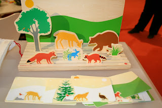 First, I loved just about everything on display at the booth for Kid-O NYC. Not all of the items I photographed are for sale yet, except for the City & Country Blocks ($50) and various puzzles. But call the shop or keep checking back to locate these other toys.