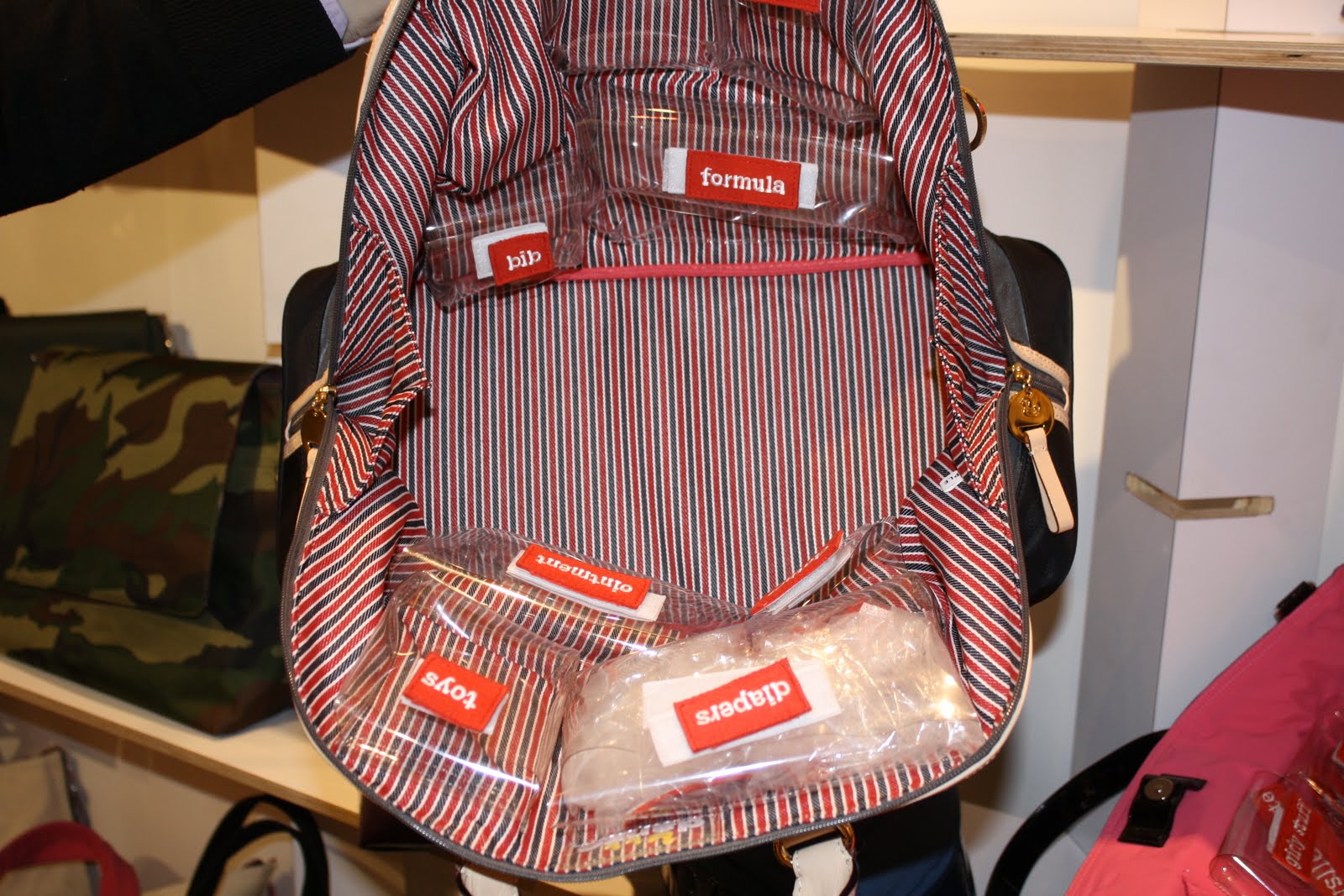 These nylon exterior diaper bags have tons of transparent compartments inside which you can label (and re-label) with Velcro tags. No more fumbling around wondering which pocket houses your keys. Clever idea.