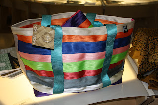 Tote of Many Colors ($67) by Maggie Bags. This colorful bag is made entirely of 100% recycled seatbelt webbing (pretty cool, right)? in a Fair Trade practice factory in the Dominican Republic.