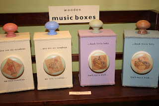 Besides the Lullaby Framed Music Cubes which were nominated as Best New Product, Tree By Kerri Lee exhibited other lovely keepsakes including (top to bottom) wooden music boxes, tooth fairy boxers, and birth announcement wall hangings.