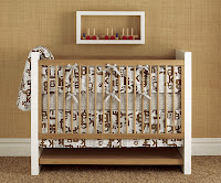 I never tire of browsing around for new crib bedding (even though I'm not buying). I stumbled onto this Dwell Baby Alphabet Crib Bedding at Design Public. The colors are a dream: pale blue and light brown letters scattered on a white background. The full set includes a reversible quilt, reversible bumper, fitted sheet, and crib skirt. $350 for the set at Design Public.