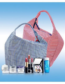 I'm a sucker for those free gift sets you get when you buy beauty products at a department store, and this Free Lancome Gift Set at Macy's seems like an exceptionally great deal. If you make any Lancome purchase of $29.50 or more, you automatically get this free gift set which is a value of $84-$102. It includes your choice of a moisturizer, mascara, eye shadow quartet, eye make-up remover, and lipstick, all packaged in a handy and chic Lancome signature striped bag (your choice: red or blue). Love it! Visit Macy's.