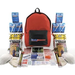 Hurricane Irene is due to hit here in NYC in about 36 hours. Yesterday I fished our old "go bag" (remember that from post-9/11 days?) out of the hall closet. Wow, it had been a long time since I updated it. It had masks, duct tape, latex gloves, expired Cipro (you know, to fight Anthrax), and even baby food jars and size 1 diapers (my kids are now 5 and 8 so this tells you old this stuff is). Luckily, I remembered that last year I also purchased a Quakehold! Grab-'n-Go Emergency Kit, 2-Person, 3-Day Backpack, a sort of easy-way-out (pun intended) for disaster preparation. For $62.99 you get all of these emergency supplies to sustain 2 people for 3 days: food, water, and emergency blankets, plus a 33-piece First Aid kit, two 12-hour safety light sticks, dust masks, nitrile gloves, emergency whistle, emergency ponchos and pocket tissues. It's all packaged in a handy backpack. Warning: do not let your children discover this kit, unless you want them parading around in silvery ponchos telling you about all the now "toys" they have found. Ahem. But seriously, it can't hurt to have this stored in a closet, just in case. Stay safe this weekend, everyone.