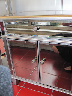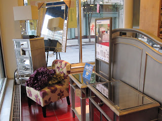 Remember I told you about the new Pottery Barn mirrored side table I was so excited to find for my bedroom? Well, it is sold out in the NYC area stores and is back-ordered online. In the meantime, though, one reader reminded me that Pier 1's "Hayworth Collection" is similar (and less expensive). So, I checked it out in my local Pier 1 store.