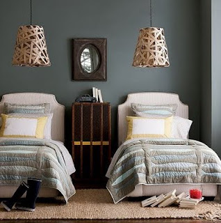 Have you ever received the Serena & Lily catalog? It is filled with pure eye candy of gorgeous (and expensive) children's rooms, some of which are not at all childish. One collection I'm particularly taken with right now is Fisherman's Quarters. Maybe I'm just dreaming of a seaside escape during this dreary winter, but something about this room looks so warm and inviting, even with its gray color palette. I love the texture of the quilts ($230-$280), the shape of the headboards ($1450 including bed) and those conversation-piece Hanging Birds' Nest Lamps ($445 for a pair), which remind me of a bit of rubber band balls! If you like Serena & Lily's stye, check out other rooms, including playrooms, living rooms, and grown-up bedrooms.