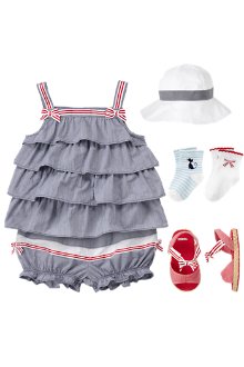 I'm not sure that I've ever seen Gymboree do this before, but they've slashed prices site-wide so that every product is $12.99 or less, no exceptions. So even those items that tend to be pricier at Gymboree (jeans, outwear, dresses) are under 13 bucks...which means some are more than 50% or even 60% off. This sweet Ruffles & Bows outfit for a baby girl would have cost about $84 head-to-toe before; with the discounts (already marked) it is now $48. Popular sizes are selling out fast, so stock up on summer clothes (and cute July 4th outfits) before they're gone at Gymboree.
