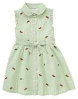 I'm a big Gymboree fan, and this brand new Watermelon Seersucker Striped Dress is probably my favorite item from all of their spring and summer collections this year. It combines several of my favorite elements- seersucker, shirtdress styling, and 100% machine washable cotton. And I love the pale green color- it would look so sweet on my green-eyed daughter. Available in sizes 3-12, $34.75 at Gymboree.